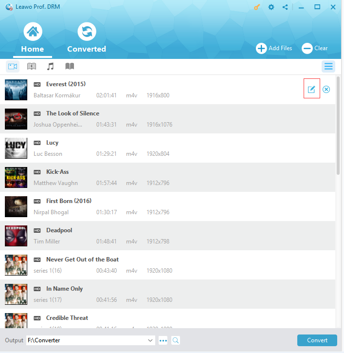 2. 默认情况下, Leawo Prof. DRM 移除 iTunes 视频的 DRM 保护,并将 iTunes M4V 视频转换为无 DRM 保护的 MP4 视频。因此,您将获得 YouTube 支持的 MP4 格式的最终结果。