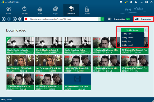 如果您使用电脑上的蓝光播放器,就可以完全离线观看 YouTube 视频。此方案允许用户直接从本地文件夹欣赏媒体文件。换句话说,您可以从 YouTube 下载精彩的蓝光电影并保存以供自己使用。当然,这需要使用专业的下载软件,包括…… FLV YouTube 下载器有了它,一切都会变得更容易。 Leawo 视频下载 它诞生的目的就是为了高效下载 YouTube 视频。而通过接下来的教程,你就能轻松实现这一点。