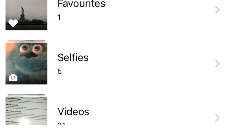 iOS 9 中,“照片”应用新增了“自拍”文件夹,用于保存所有自拍照片。实际上,全景照片也会保存在一个单独的文件夹中。