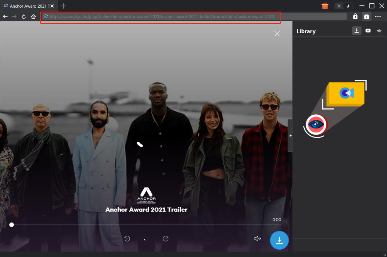 使用网络浏览器输入 Joyn 视频链接。播放您想要下载的 Joyn 视频。要分析视频来源,请务必点击右下角的下载图标。请注意,您需要使用 Joyn 帐户登录才能下载付费内容。