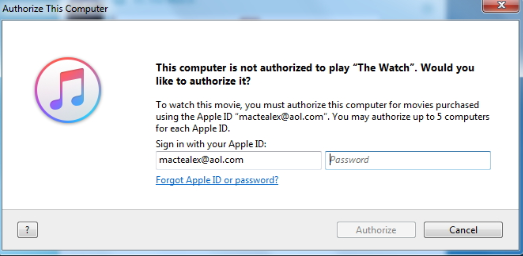 注: 如果您第一次尝试使用当前设备访问 iTunes 媒体文件,您将看到一个警告窗口,告诉您授权这台计算机。您必须确保您当前的设备有权访问您的媒体文件,否则您将无法导入这些文件。