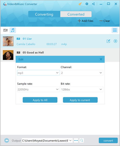 步骤3: 最后,在底部的“输出”框中设置输出目录,然后单击“转换”按钮开始转换您的 iTunes 文件,以便在诺基亚手机上播放。