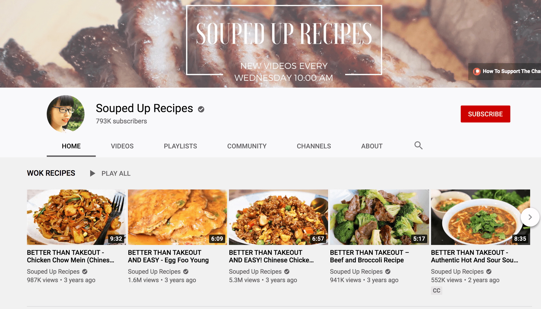 Souped Up Recipes 的运营者是 Mandy,她是一位来自广东、后来移居美国的中国女孩。这个频道总共贡献了 209 个视频,短短 793 年内订阅人数就以惊人的速度增长到 3 万。Mandy 喜欢分享传统中式烹饪以及甜点和亚洲美食。她的教程步骤和细节都非常具体,主要针对广东家庭烹饪。加入她的 YouTube 之旅,探索更多关于在家制作中餐的信息。