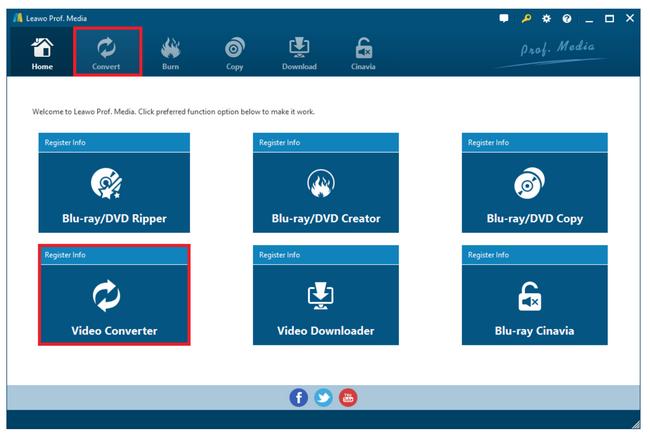 如果您尚未安装视频转换器,请点击下方按钮下载并安装到您的硬盘。在主界面点击“视频转换器”启动该程序。 Leawo 专业媒体。