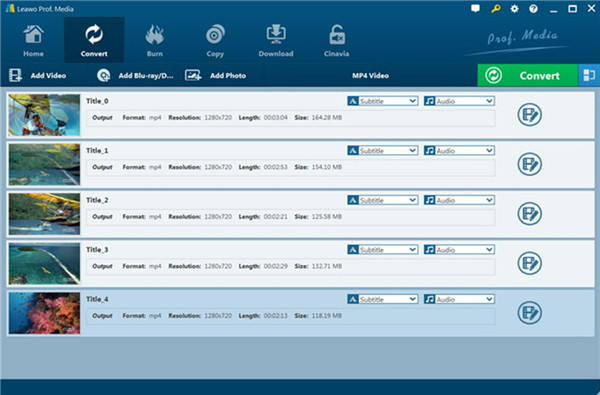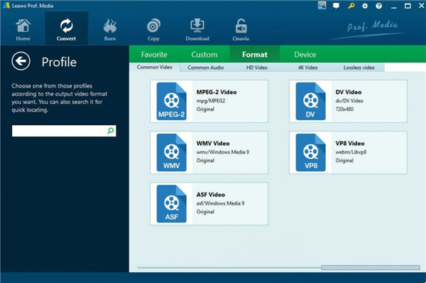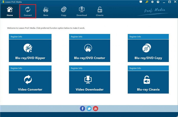 火起来 Leawo Prof. Media 然后点击子菜单上的“转换”按钮,调出“转换”界面。您也可以从界面中选择“蓝光/DVD 翻录器”,调出 Leawo DVD开膛手。