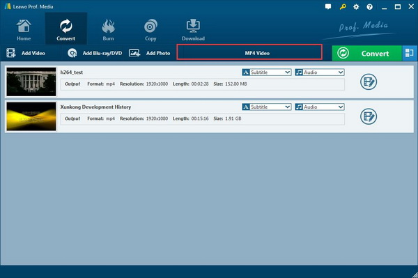 安装后,您可能会发现 Leawo 视频转换器已集成到程序套件中 Leawo Prof. Media. 进入主界面时 Leawo Prof. Media,点击菜单上的“转换”按钮或点击中间的“视频转换器”按钮进入转换页面。