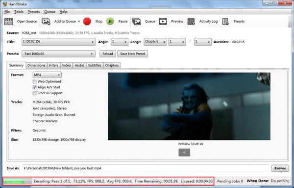 完成所有设置后,只需单击绿色的“开始编码”按钮即可开始将 VOB 转换为 MP4。一段时间后,转换完成后,您将在之前设置的文件夹中看到输出的 MP4 视频。
