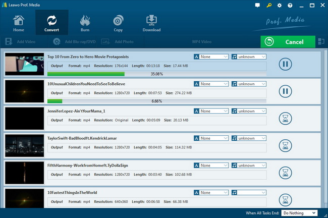 由于最后一步是启动所有进程,因此 Leawo 视频转换器的运行速度比其他任何转换程序快 6 倍。经过一段短暂的时间后,一切都将自动完成。