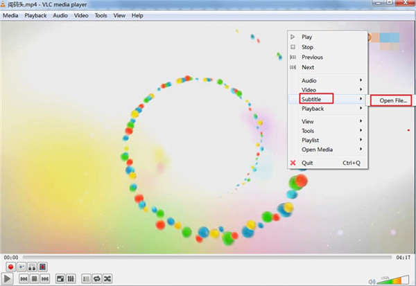 在界面上右键选择“字幕”,打开字幕文件。