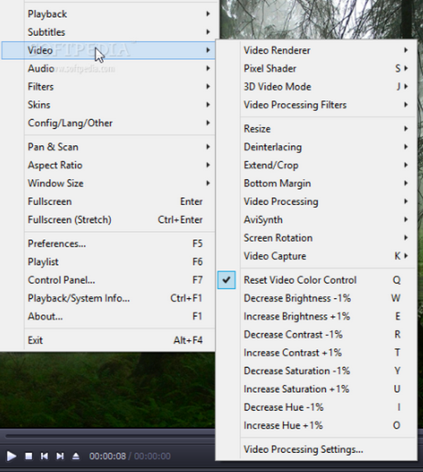右键单击流媒体框架或继续使用顶部的主菜单图标查看更多高级设置。如果将鼠标放在“视频”设置上,将弹出右侧菜单。选择列表中的任何项目都会打开另一个窗口。