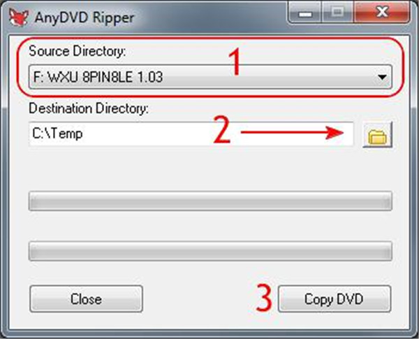 - 选择源目录,然后选择保存文件的目标目录。之后,单击“复制 DVD”按钮开始。