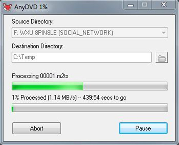 - 几分钟后,蓝光盘的保护将被解除,然后蓝光盘的内容将被复制到硬盘中以进行下一步操作。