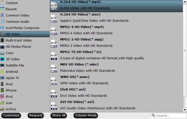 步骤2: 点击“格式”栏,从下拉列表中选择“高清视频”主类别下的 Synology 支持的数字文件格式“H.264 高清视频(*.mp4)”。