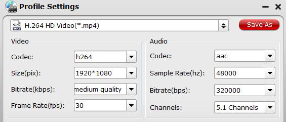 点击主界面上的“设置”按钮,打开“配置文件设置”窗口。在这里,您可以灵活选择或精确指定配置文件参数,包括视频编解码器、分辨率、比特率、帧速率、音频编解码器、比特率、采样率、声道数等。您应该选择上面提到的视频编解码器。