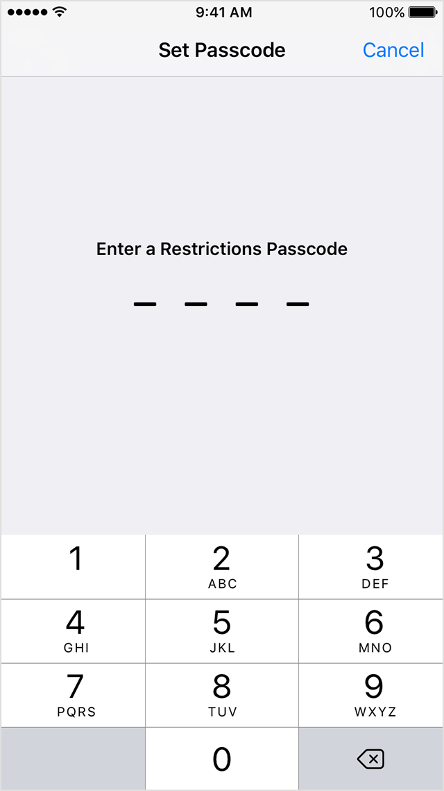 - 步骤 2. 您将被要求创建一个 限制密码 稍后您需要用它来更改设置或关闭设备。 限制(注意:请使用容易记住的密码,因为如果您忘记了访问限制密码,则必须抹掉 iPad 并将其设置为新设备才能移除访问限制密码。)