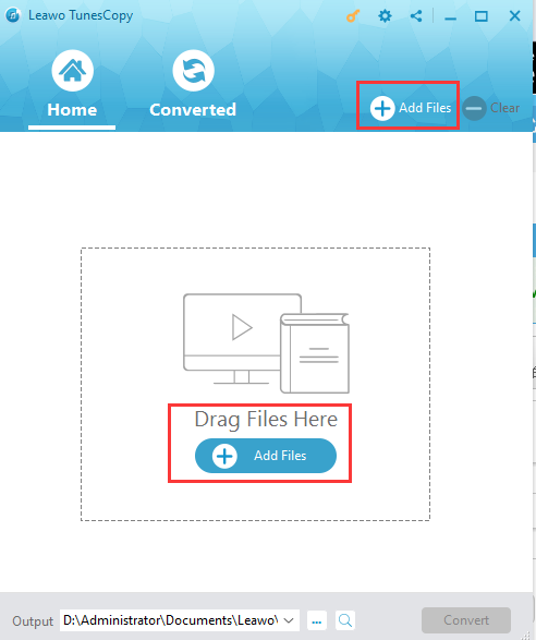 打开 TunesCopy 并进入主界面。点击“添加文件”按钮即可调出子菜单。选择要转换的目标视频,然后点击“添加”按钮导入目标影片。