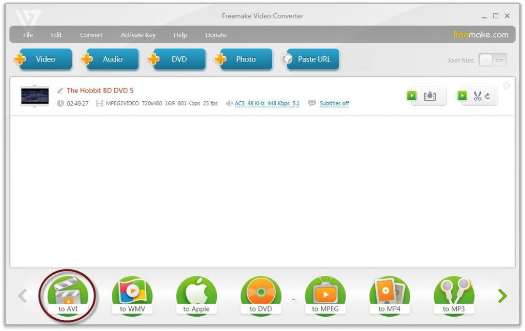 ☉ 将 DVD 转换为视频/音频文件,如 MKV、MP4、AVI、FLV、RMVB 等
