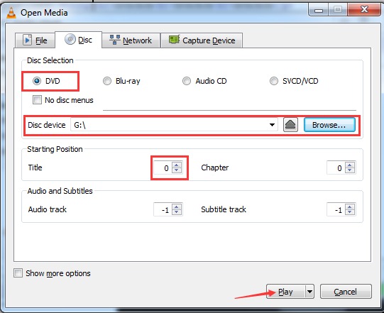 - 从源 DVD 电影文件中选择要输出的字幕和音轨。