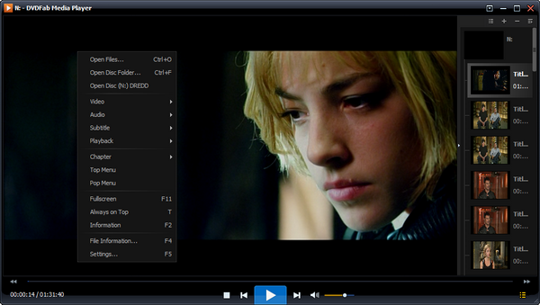 DVDFab 是音乐和电影爱好者最好的 Windows 蓝光播放器之一,支持菜单,多年来一直受到媒体播放用户的欢迎。该程序可以支持多种视频格式,包括 4K, UHD、HEVE、DVD、蓝光、ISO 映像文件等。此外,如果您想享受具有菜单支持的蓝光播放器,那么它可以满足您的要求,因为它为您提供蓝光视频的导航菜单类型支持。它为您提供了多种界面选择,您可以自由更改多套设计皮肤。然而,DVDFab 在支持方面有限 3D 视频格式,并且与 Leawo 蓝光播放器。而且价格较高。