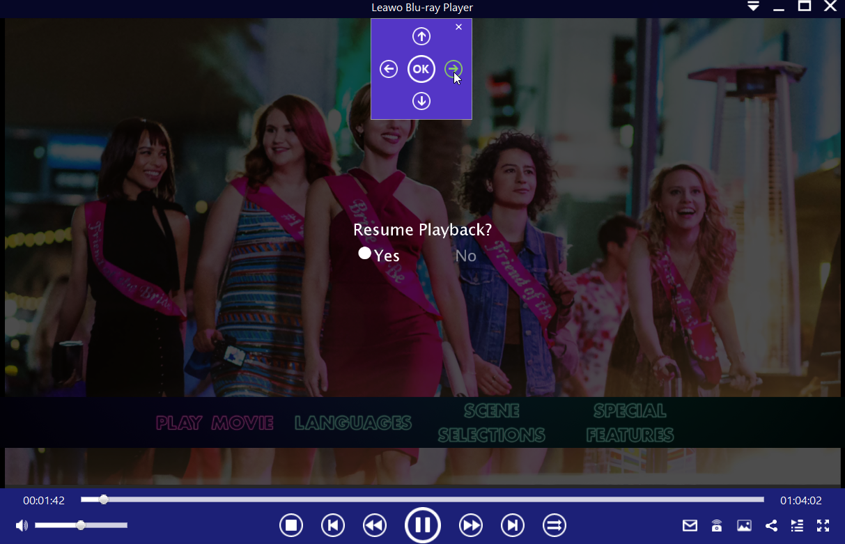 在本部分中,我们将演示一个指南,向您展示如何在 Leawo 蓝光播放器实现菜单操作。通过虚拟控制器面板支持, Leawo 免费蓝光播放器软件使您能够通过虚拟控制面板选择在蓝光/DVD 光盘播放期间在光盘菜单上播放的内容。