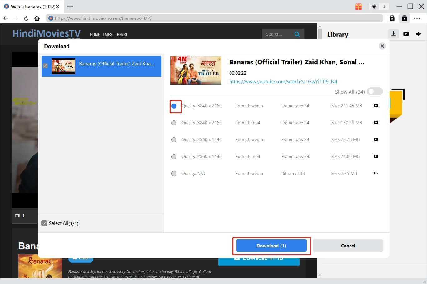 进入源页面后,会弹出一个窗口,其中包含所有可下载的选项。您可以选择一个或多个选项,然后点击“下载”按钮,即可将印度网络剧集下载到您的电脑上。