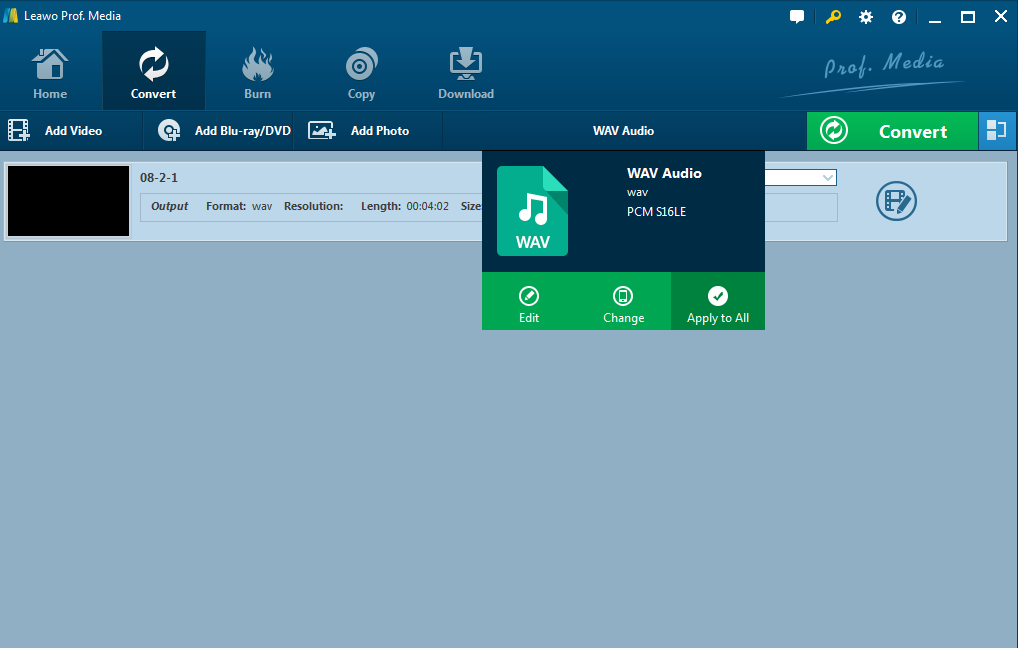 有兴趣的人 MP3 到 WAV 的转换可能会从上面的介绍中找到帮助。你可以转换 MP3 通过最佳方式转换为 WAV MP3 到 WAV 转换器,通过在线音频转换器来转换 MP3 可以免费将音频文件转换为 WAV 文件,或者通过音乐播放器完成这项工作。如果你不想一直在线,不时地犹豫是否要浏览网站,并且不愿意经历复杂的转换过程 MP3 和 WAV 通过音乐播放器(有时它们真的很烦人!!),我强烈建议你下载一体化 Leawo 视频转换器。只需轻松点击几下即可完成所有操作,而且该软件无需太多技术知识。内置的编辑功能将尽力恢复原始文件质量,确保用户获得最佳体验。总而言之, MP3 到 WAV 文件的转换对我们来说是一项简单的工作,我们真的不需要太担心。