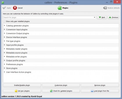 2. 启动 Calibre,点击首选项按钮选择“更改 Calibre 行为”选项,然后向下滚动到高级部分,再点击插件。