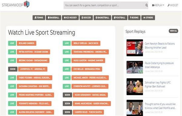 Stream Woop是另一个观看免费体育直播的好选择,每场体育赛事都经过精心安排,确保您不会错过任何一场喜爱的比赛。与其他平台不同的是,Stream Woop会在每次直播开始时发出提醒。最棒的是,您无需注册即可观看,而且可以根据需要搜索不同的体育项目。