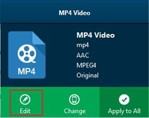 点击“添加照片”按钮旁边的下拉框,选择“MP4 视频”。此时会弹出一个面板,点击“更改”按钮进入“配置文件”界面。在这里,您可以在“格式”或“设备”组下选择任何视频格式作为输出配置文件。