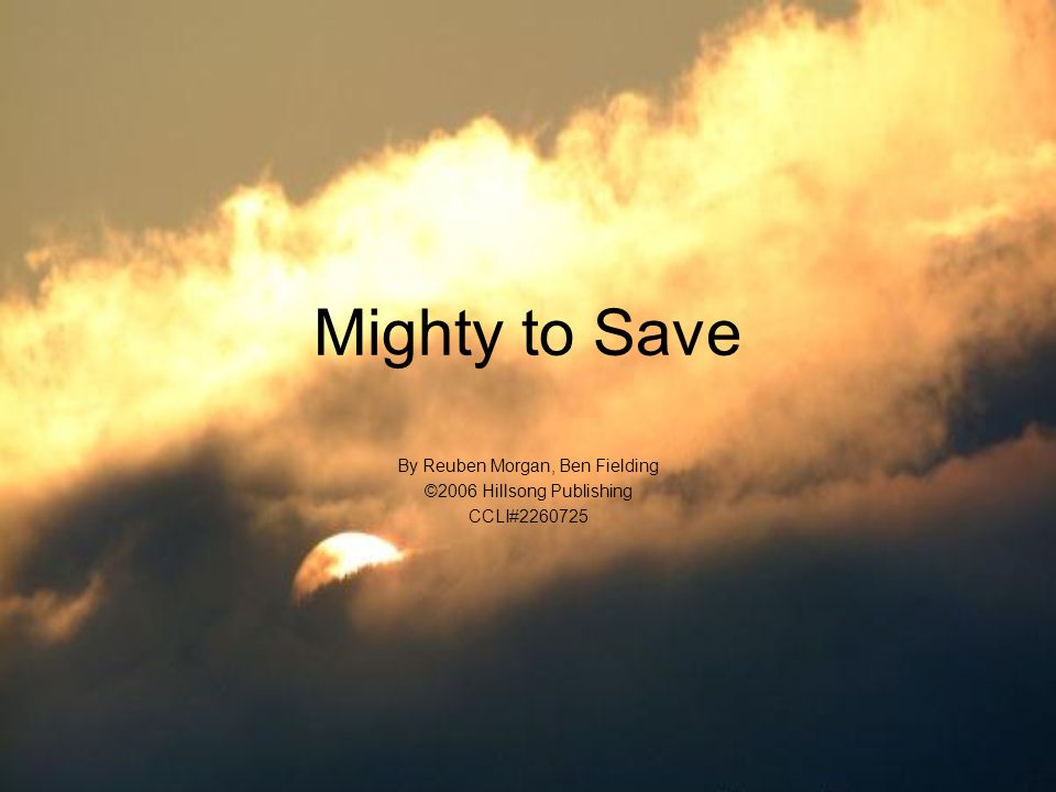 这首广受欢迎的敬拜歌曲颂扬我们永不停止的救主。歌曲由澳大利亚乐队 Hillsong 的成员 Rodney Clawson 创作,该乐队以赞美敬拜音乐(例如《向主呼喊》)闻名国际。《Mighty to Save》在世界各地的教会中随处可见。Jeremy Camp、Michael W. Smith 和 Newsboys 等乐队都曾翻唱过这首歌。