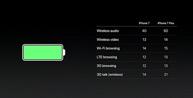 苹果公司声称新款iPhone拥有“史上最长的电池续航时间”,但实际提升幅度似乎和以往一样微乎其微。该公司表示,尺寸较小的iPhone 7比iPhone 6S的续航时间长两个小时,而7 Plus则比6S Plus长一个小时。iPhone 7的电池续航时间是否真的如此出色?我们或许需要等待评测才能知晓。