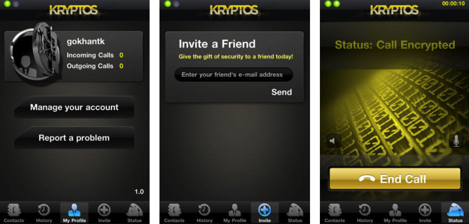 Kryptos 是一款安全、完全加密的语音通信应用程序。它采用军用级 256 位 AES 加密技术对语音通信进行加密,并在传输前使用 2048 位 RSA 进行密钥交换。用户可以创建自己独特的个人 ID。