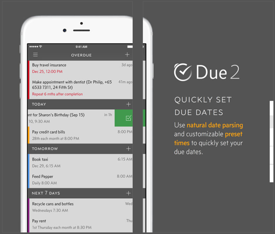 Due 是 iPhone 上最好的提醒应用之一,甚至可以说是最好。Due 会记住你需要的所有事情,这样你就不用自己动手了,因为它会反复提醒你截止日期,直到你采取行动为止。有了 Due,你不可能忘记任何事情。此外,它使用起来快速、简单、高效。无需创建帐户,无需设置开始或结束日期,无需确定优先级、标记或分类。你只需点击 12 个预设和自定义时间中的任何一个,即可设置截止日期并快速重新安排现有日期。无需滚动时间选择器。更重要的是,它不需要互联网连接。听起来真的很吸引人!使用 iCloud 或 Dropbox 在你的 iPhone、iPad 和 Mac 上保持提醒事项同步。