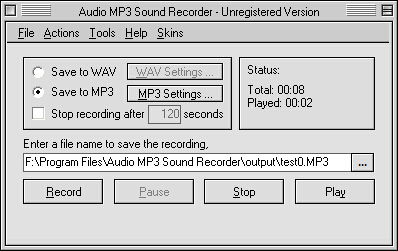 您可以使用它将通过声卡的任何音频流录制成以下音频格式 MP3 或 WAV。只要声音通过声卡,就可以捕获并保存到 MP3/WAV 文件。您还可以设置固定比特率或可变比特率、整体质量和声道模式。它还可以用来播放您录制的内容。此外,它还提供多种皮肤供您选择。这款软件非常简单易用。
