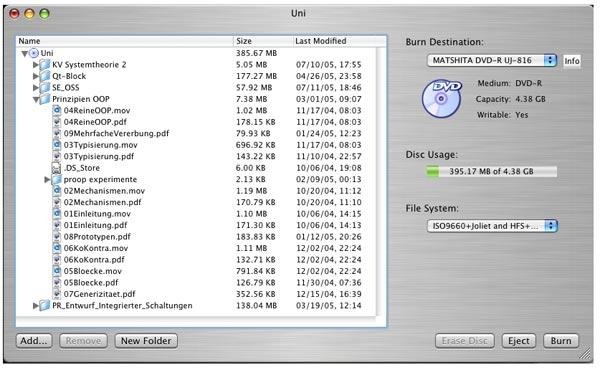 Burn 是另一款广受欢迎的 Mac DVD 创建工具,简单易用且功能强大。该程序支持几乎所有类型的 DVD 和 CD 刻录文件。您可以在刻录电影时创建交互式菜单,也可以选择主题。此外,您还可以选择不同的文件系统,以便与使用不同操作系统的用户共享文件。该程序允许更改高级设置,例如光盘图标文件权限、文件日期等。使用 Burn,您可以复制光盘,也可以使用映像文件将其重新制作成 DVD。此外,该软件还支持文件转换。
