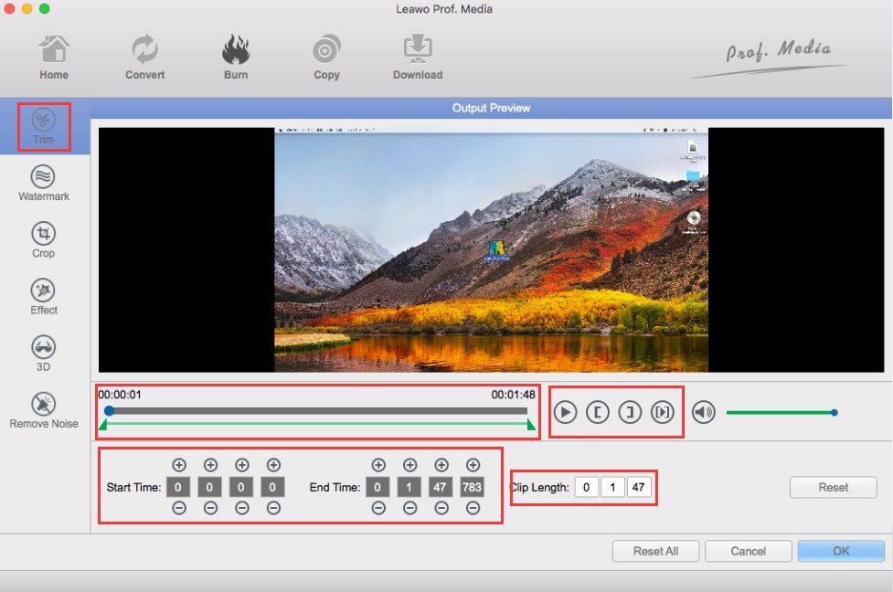 菜单模板设置完成后,您可以点击编辑图标对视频进行修剪、裁剪、添加水印、字幕等编辑,让您的视频更加完美。您可以访问 内部视频编辑器 学习如何编辑视频 Leawo DVD 创作者。