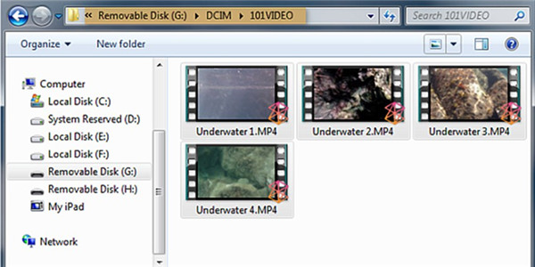2. 点击 GoPro 相机的磁盘,浏览其存储文件夹以查找其中的视频。之后,您可以选择要发送到 iPhone 的视频文件。将它们复制并粘贴到计算机上的文件夹中以供日后使用。