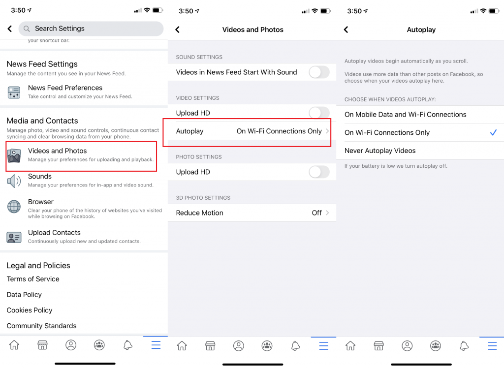 2. 如何在 iOS 版 Facebook 应用中关闭视频自动播放功能: