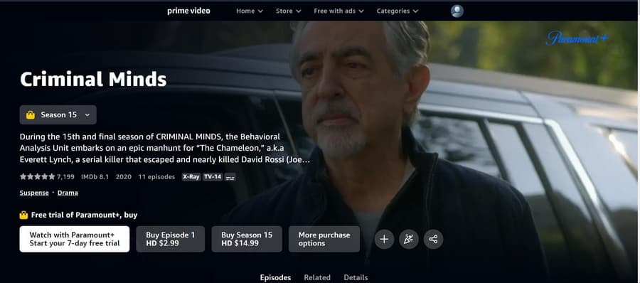 Paramount+ 是美国的一项订阅视频点播服务,可让您观看直播电视、电影、原创内容、新闻等。您可以在此观看数万集您喜爱的节目。 Paramount+ 如果您已经订阅,则可以在任何设备上观看,包括《犯罪心理》的全部 16 季。 Paramount+ 提供两种订阅方案:基础版和高级版。基础版每月收费 4.99 美元,每年收费 49.99 美元,包含少量广告。高级版每月收费 9.99 美元,每年收费 99.99 美元,让您可以畅享无广告的流媒体内容。平台还提供为期一周的免费试用,供您在选择方案之前使用。