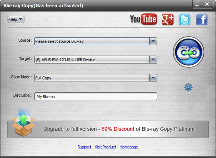 - 从官方网站下载并安装免费蓝光复制软件到您的电脑上。将蓝光光盘插入蓝光光盘刻录机驱动器。