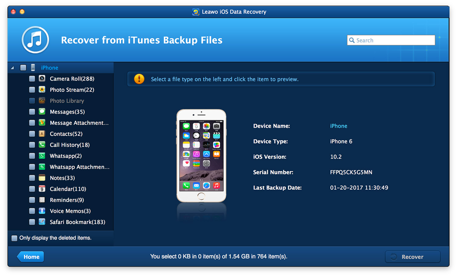 Leawo Mac 版 iOS 数据恢复为您提供安全、精确、快速的数据恢复体验。