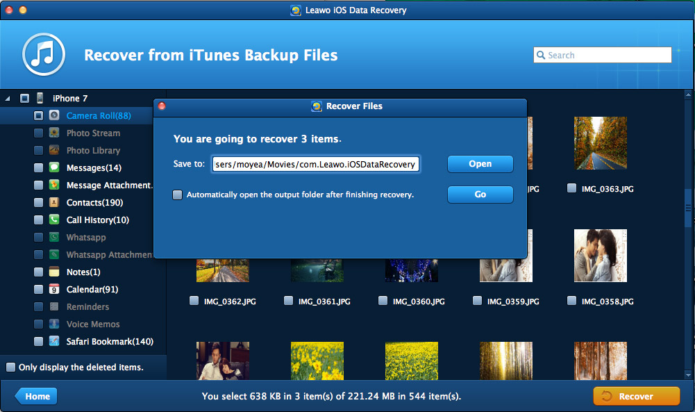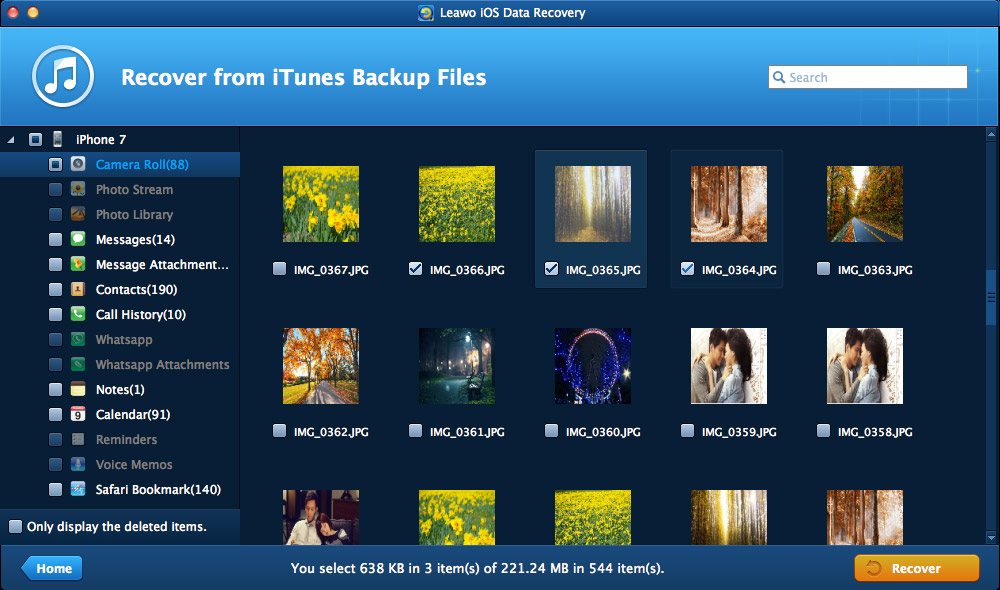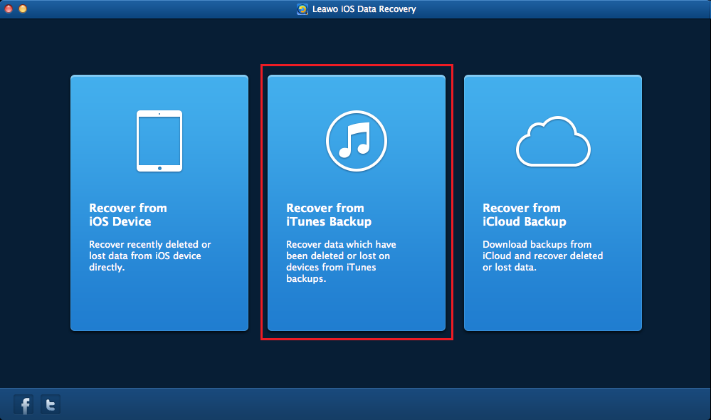 运行 Leawo 在 MacBook 上安装 iOS 数据恢复软件后,点击 “从 iTunes 备份中恢复” 条目。
