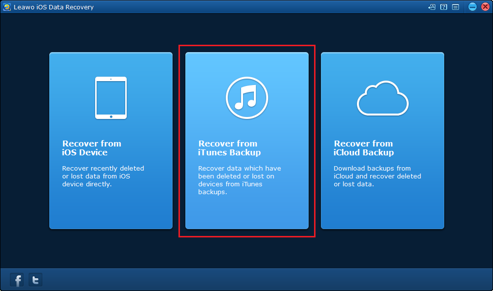 要从 iTunes 备份恢复数据,首先单击主界面上的第二个选项卡。