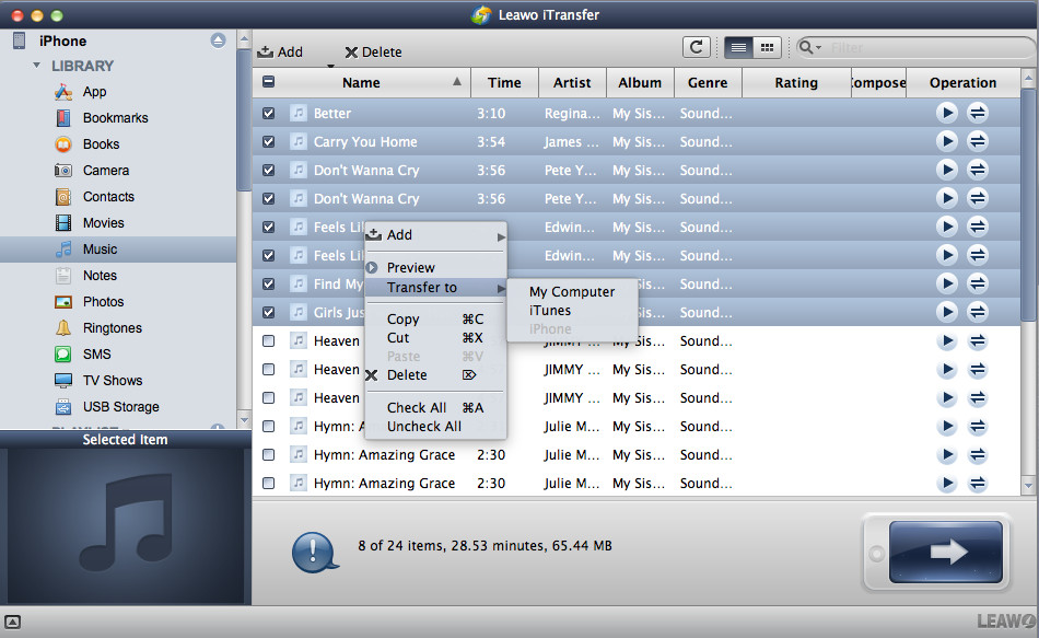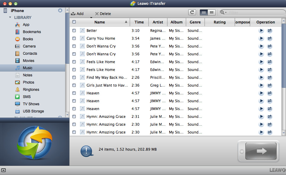 Leawo iTransfer for Mac 是一款出色的 iPod/iPad/iPhone 管理器,可让您轻松管理各种文件。播放列表、联系人、短信、便笺等均可有效管理。