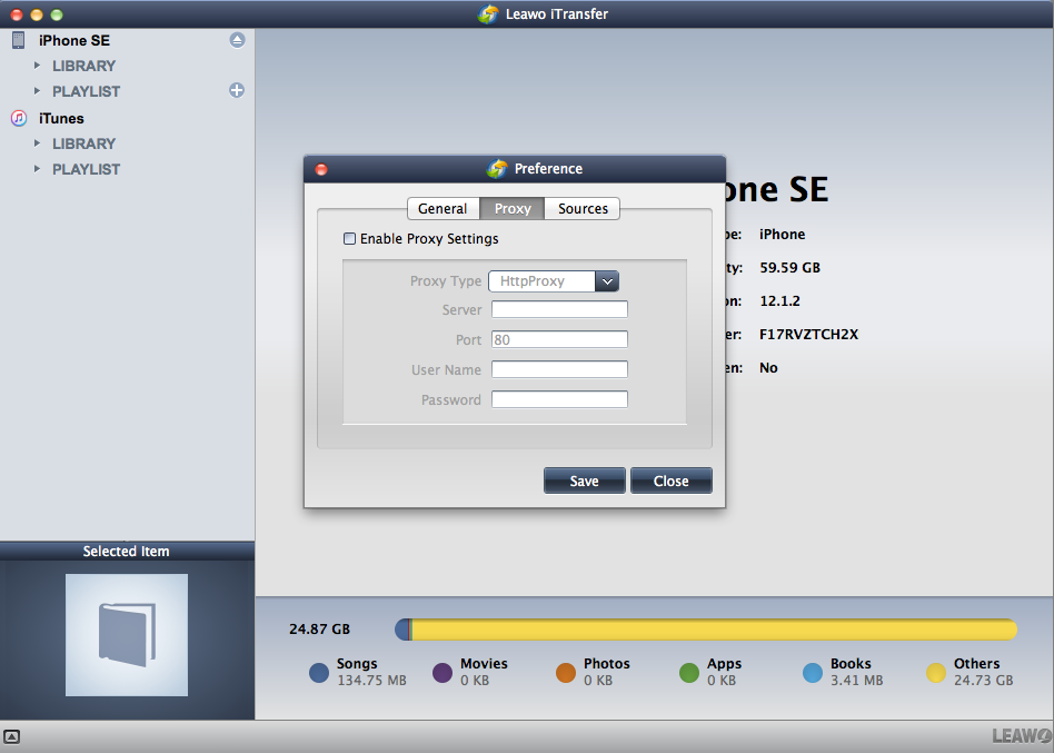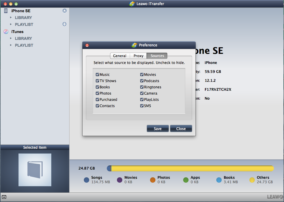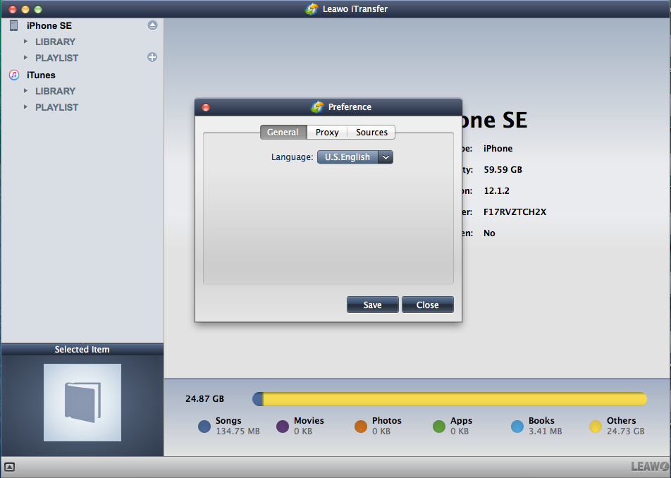 Leawo iTransfer 对于 Mac 偏好设置