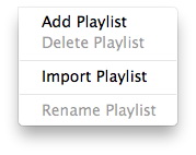 e. 播放列表: 提供管理 iOS 设备或 iTunes 播放列表的选项。在左侧边栏选择一个播放列表,然后单击 “播放列表” 选项。 然后选择 “添加播放列表” 创建新的播放列表, “删除播放列表” 删除播放列表, “导出播放列表” 要将播放列表导出到 Mac, “导入播放列表” 从 Mac 导入播放列表并 “重命名播放列表” 重命名播放列表。