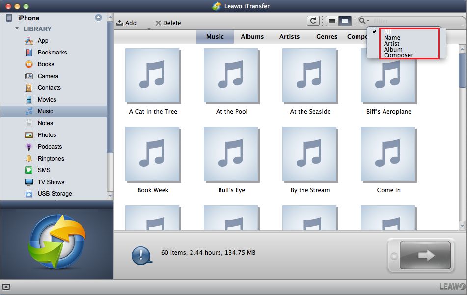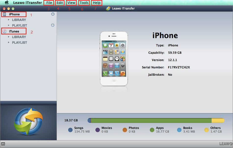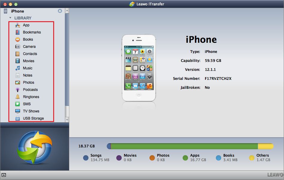 以下是主界面 Leawo iTransfer 对于 Mac: