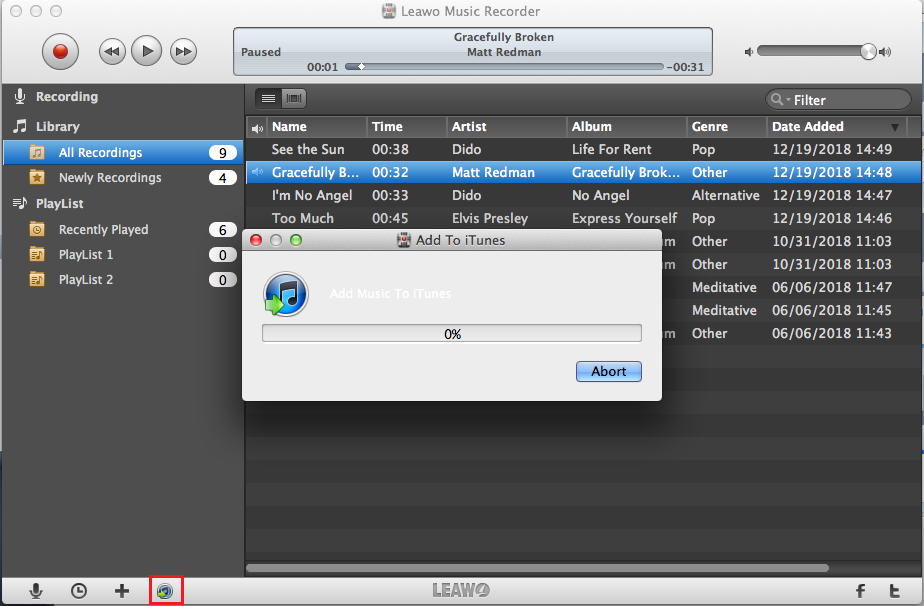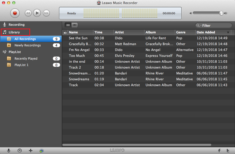 c. 支持:链接到 Leawo Mac 的音乐录音机。