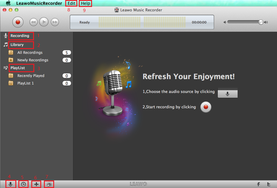 a. 在线帮助:链接到 Leawo Mac 的音乐录音机。