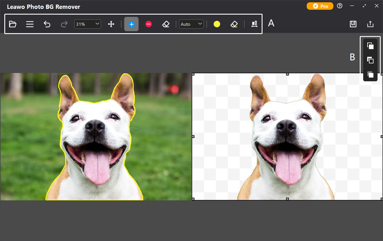 一般情况下,自动背景去除已经可以满足一般需要。但为了进行更精确的调整,Photo BG Remover 为您提供了两种去除图片背景的模式:自动模式和手动模式。